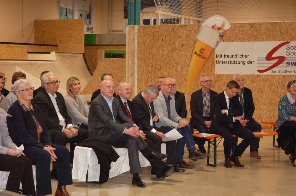 Über 160 geladene Gäste gaben uns die Ehre um die Funsport-Halle mit ihren drei Hallenbereichen „BMX- und Skatehalle“, „Parkour-Halle“ und „Boule-Halle“ feierlich, sportlich und ökumenisch einzuweihen und zu eröffnen.