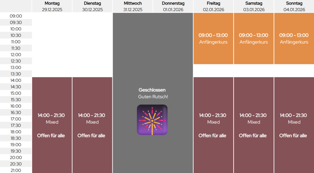 • Di. 30.12.2025 // 14:00 Uhr – 21:30 Uhr // Mixed – Alle Sportarten